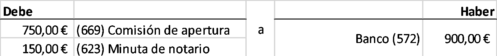 En este caso, de microempresas, sólo vamos a contabilizar los pagos efectivamente realizados sin dar de alta en contabilidad el contrato como tal, por lo tanto al contratar solo imputaremos los pagos que hacemos por la comisión de apertura y la minuta del notario.