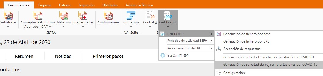 Indicarte que también se puede generar automáticamente la solicitud colectiva para el cobro de las prestaciones de los trabajadores afectados por el ERTE del COVID-19.