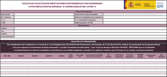 El Servicio Público Estatal de Empleo, ha diseñado un formulario en formato Excel para que las empresas afectadas, lo cumplimenten y lo envíen a dicho organismo.